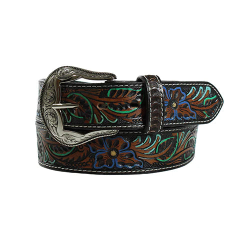 Ceinture Nocona Women's Floral Tooled Belt - Brown w/Teal/Royal Brown/Turquoise Accents